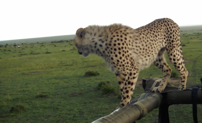 サファリジープに乗ってマサイマラ国立保護区内のチーターを観察中、突然1頭のチーターがジーブの屋根の上に飛び乗ります。緊迫した空気が車内に広がりますが、チーターが野生らしからぬ見事なドジっぷりを披露しその空気を打ち消します。